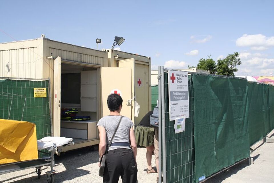 Jeden Tag sorgen dort ehrenamtliche Helferinnen und Helfer des Münchner Roten Kreuzes für die Sicherheit der Besucher und sind sofort zur Stelle, wenn qualifizierte Erste Hilfe zu leisten ist. Am Samstag waren die Helfer auch verantwortlich für die vielen Besucher des Flohmarkts auf der Theresienwiese, der