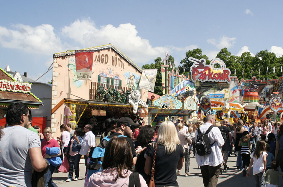 Bei strahlendem Sonnenschein strömten am Samstag viele Tausend Besucher auf das Münchner Frühlingsfest, das noch bis zum 15. Mai dauert.