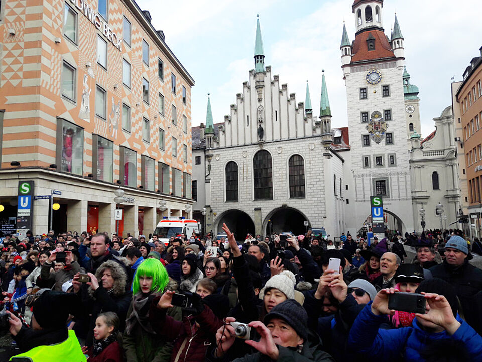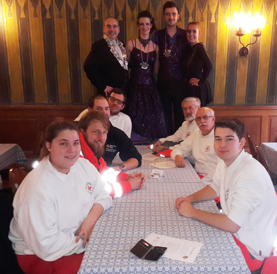 Am vergangenen Sonntag betreute das Münchner Rote Kreuz mit vier mobilen Sanitätsstationen, Notarzt und Einsatzleiter den Faschingszug der Damischen Ritter in der Innenstadt. Die ehrenamtlichen Helfer*innen hatten allerdings sehr wenig zu tun. Umso mehr freuten sie sich über das persönliche Dankeschön des Prinzenpaares nach der Veranstaltung.