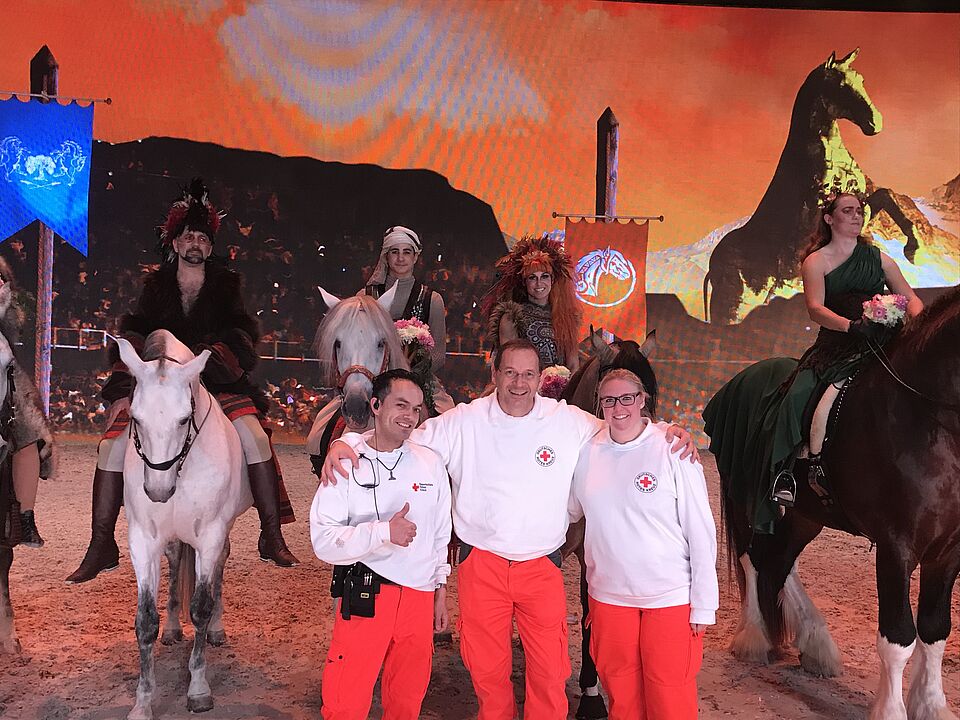 Medizinisch mussten die Sanitäter bei diesem Dienst nur einmal eingreifen. Eine junge Dame hatte mit asthmatischen Beschwerden auf Grund ihrer Pferdeallergie zu kämpfen. Nach kurzer Behandlung und einer medikamentösen Therapie konnte sie aber die Show bis zum Ende verfolgen.