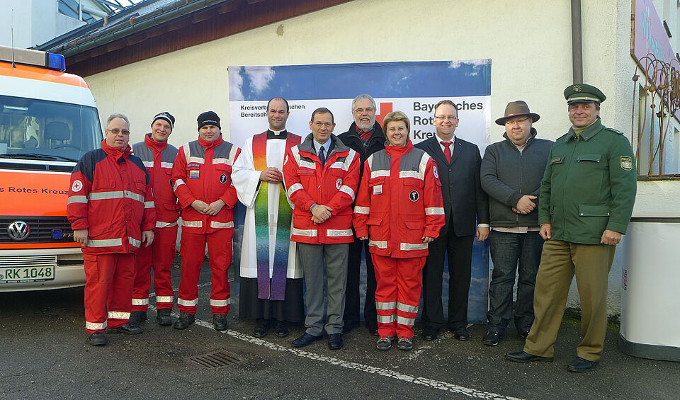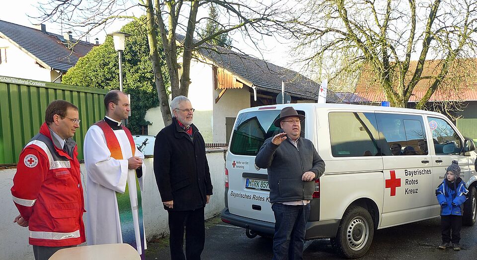 Im Anschluss gab Pfarrer Dr. Markus Braun dem Fahrzeug des BRK Ismaning seinen kirchlichen Segen und betonte: „Gerade in der Weihnachtszeit nehme ich einen solchen Termin sehr gerne wahr. Ein solch beispielhaftes soziales Engagement ist bester Ausdruck von christlicher Nächstenliebe. Ich wünsche mir, dass es mehr junge Menschen schaffen, sich von ihren Computern etwas zu lösen, um sich für die Gemeinschaft zu engagieren.“