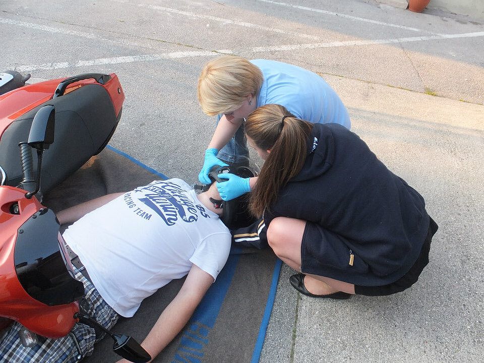 Am vergangenen Samstag kamen 20 Ismaninger Schulweghelfer zum Roten Kreuz und lernten Erste-Hilfe bei Not- und Unglücksfällen zu leisten. Der Kurs wurde auf Initiative von Andrea Schöllhorn, die seit 1993 die Organisation der ehrenamtlichen Schulweghelfer in Ismaning leitet, durchgeführt. „Das ist vorbildlich“ betont BRK Bereitschaftsleiter Fried Saacke, „die Schulweghelfer nehmen so ihre Verantwortung war und bereiten sich in ihrer Freizeit darauf vor bei Unglücks- und Notfällen helfen zu können.“