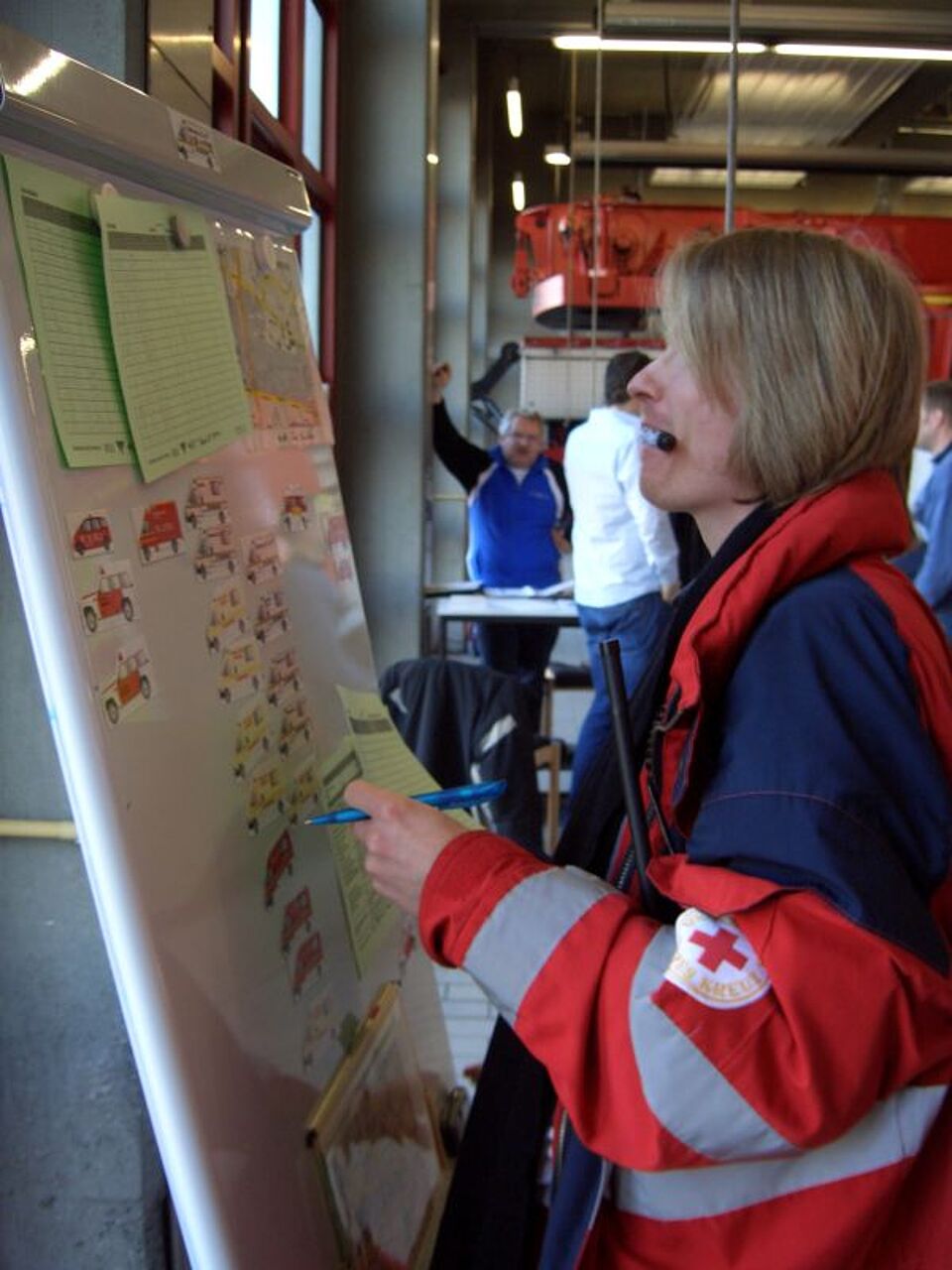 Mehrere Führungskräfte des Münchner Roten Kreuzes nahmen am Freitag und Samstag am Führungssimulationstraining der Münchner Berufsfeuerwehr teil.