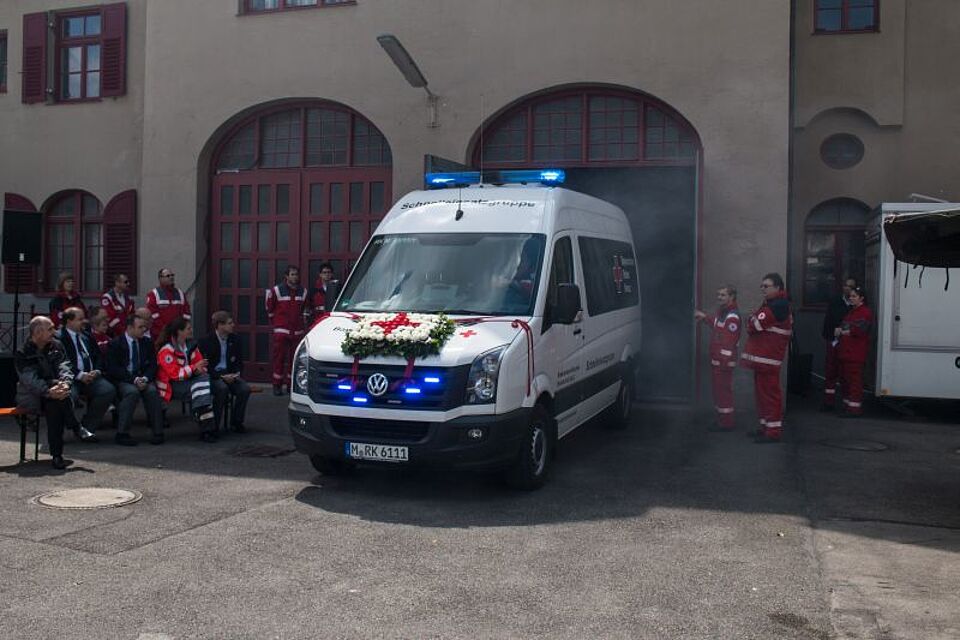 Mit einem zünftigen Fest bei schönstem Wetter stellte die Bereitschaft Süd2 am 31. Mai im Rotkreuzhaus in Sendling ihr neues Einsatzfahrzeug vor und ließ es ökumenisch Segnen.