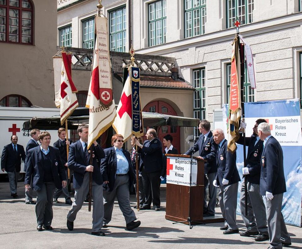 Mehr als 125 Gäste, unter anderem Michael Rauth, der Landesbereitschaftsleiter, Paul Polyfka, der Vorsitzende des Münchner Roten Kreuzes, Sabine Wagmüller, dessen 1. Stellvertreterin und Michael Schönberger als Vertreter der Kreisbereitschaftsleitung waren in die Boschetsriederstrasse 33 gekommen um mit Ihren Rotkreuz-Kollegen die Inbetriebnahme zu feiern. Sogar die Leitungskräfte der Partnerbereitschaften Aschau und Weißenhorn waren angereist.