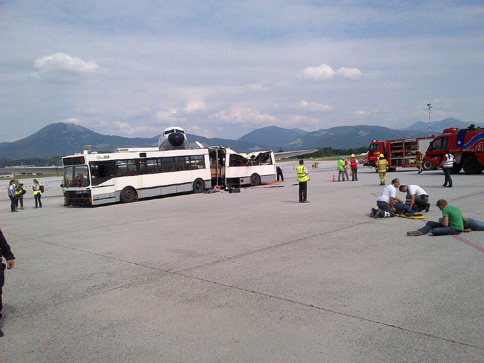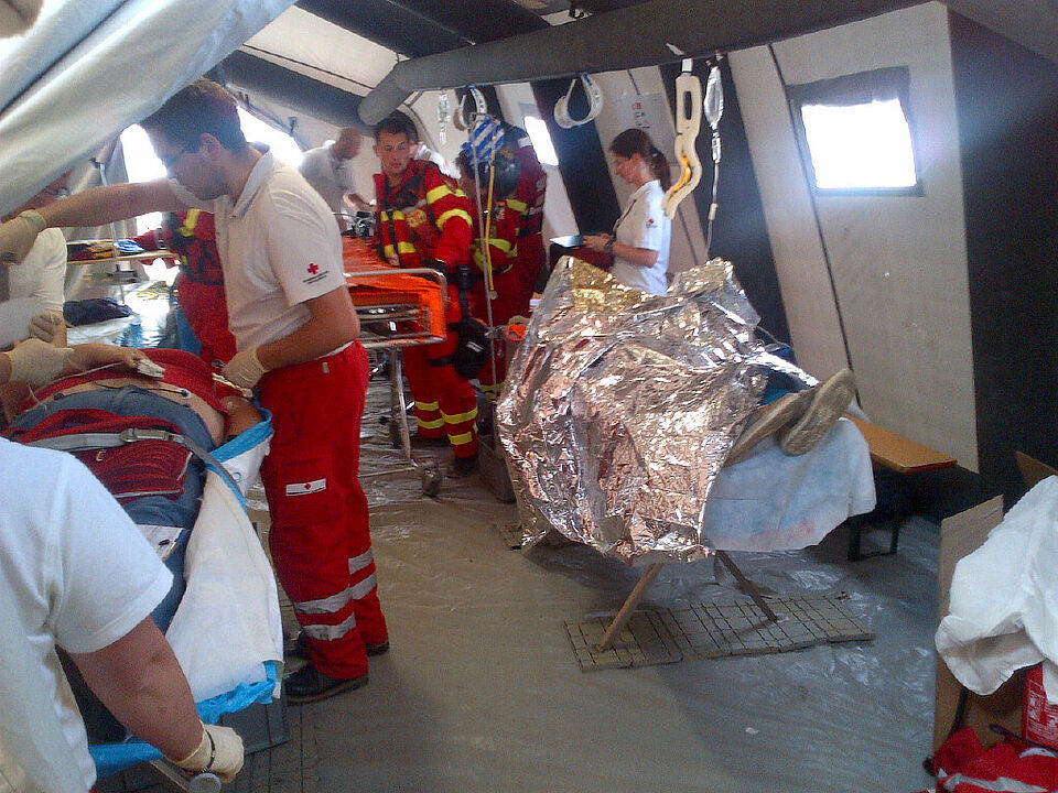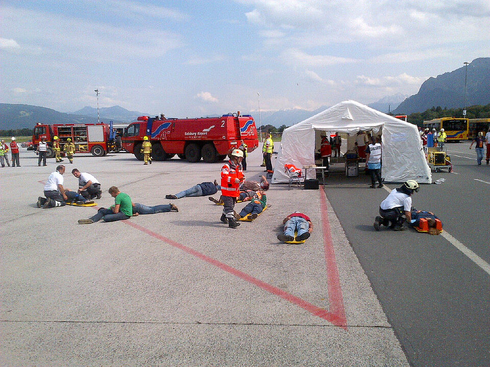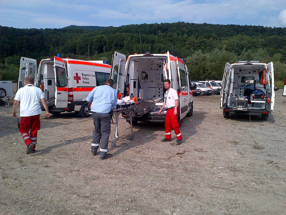 Erlebnisbericht27.06.2013:Eckdaten:Ankunft Sammelraum 06:00 UhrVerlegung Base of Operation Schwarzenberg Kaserne, Salzburg, 07:30 Uhr.B-KTW von W1 und Z1 Einsatz um 15:30 Uhr, mit Einsatzauftrag:- Flugzeug gegen Bus.- Transport der Verletzten zur AMP (Advanced Mediacal Post) in Puch.- Einsatzdauer ca. 2,5hÜbernachtung in einer "Zeltstadt"28.06.2013:Kurze Nacht. Transport Komponente bereit im Bereitstellungsraum und wartet auf ihren Einsatz.Verlegung in den Bereitstellungsraum um 09:00 Uhr mitEinsatzauftrag:- Zugunfall mit Gefahrstoffaustritt- Transport der Verletzten zur AMP (Advanced Mediacal Post) in Puch.- Einsatzdauer ca. 3,5h11:00 Verlegung zum Schadensort mit Abtransport zum AMP und/oder Hubschrauberlandeplatz15:00 Uhr Rückkehr zur BOO mit Herstellung Einsatzbereitschaft18:30 Uhr Voralamierung und Aufteilung des Kontigents in zwei Kontigente (Bayern 1 und Bayern 2)19:00 Uhr Kontigent Bayern 2 Verlegung in den Bereitstellungsraum Nähe der Salzach zum Abtransport Verletzter nach einer Schiffskenterung20:00 Uhr kein Eingreifen notwendig und Rückverlegung in die BOO29.06.2013:Kontigent Bayern 1 (Zentral 1 B-KTW)Übungsbeginn: 08:30 - 16:00 Uhr.Einsatzort Golling Verschüttung im Steinbruch mit Chemischen Gefahrstoffen262 Einsatzkräfte39 VerletzteEinsatzauftrag:- Trägertrupps von der Verletztenablage zum Sichtungszelt BHP- Abtransport Verletzter zum AMP im PuchKontigent Bayern 2 (West 1 B-KTW)Übungsbeginn: 07:30 - 15:00 UhrEinsatzort: Salzburg Hauseinsturz mit Chemischen GefahrenstoffenEinsatzauftrag:- Abtransport Verletzter zum AMP im PuchInsgesamt anspruchsvollste 3 Übungstage mit sehr großem Materialaufwand das Schadenszenario darzustellen. Die Mimen waren erstklassig geschminkt und auch machten uns auch das Leben im KTW-B nicht leicht :-).Trotz kurzer Nächte und zahlreicher Mückenstichen eine sehr gute Stimmung in der großen Gemeinschaft der internationalen Hilfsorganisationen.Heute Abend große Abschlußparty am Salzburger Flughafen mit Abendessen aller beteiligten Nationen aus Österreich, Bulgarien, Kroatien, Tschechien, Niederlande, Rumänien und Deutschland.