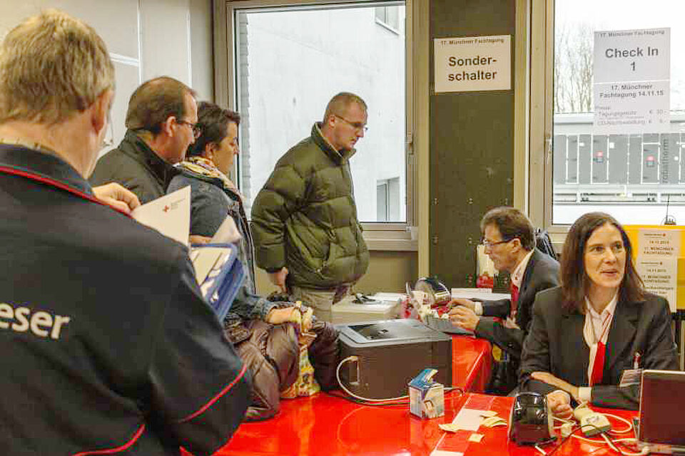 diverse Fachaussteller bei, die die Pausen nutzten, um den Teilnehmern ihre Produkte und Lösungen vorzustellen. Ehrenamtliche Helfer des