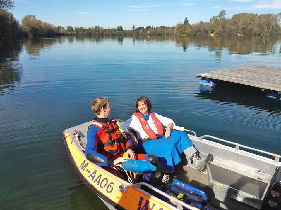 Als kleines Dankeschön für die Bewirtung nahmen die Wasserretter die Küchenhelfer nachmittags mit auf eine Bootsrundfahrt auf den Langwieder See. "Toll, dass die Rotreuzarbeit so vielfältig ist und wir so viel voneinander lernen können", freute sich Sabine Wagmüller nach der Übung.