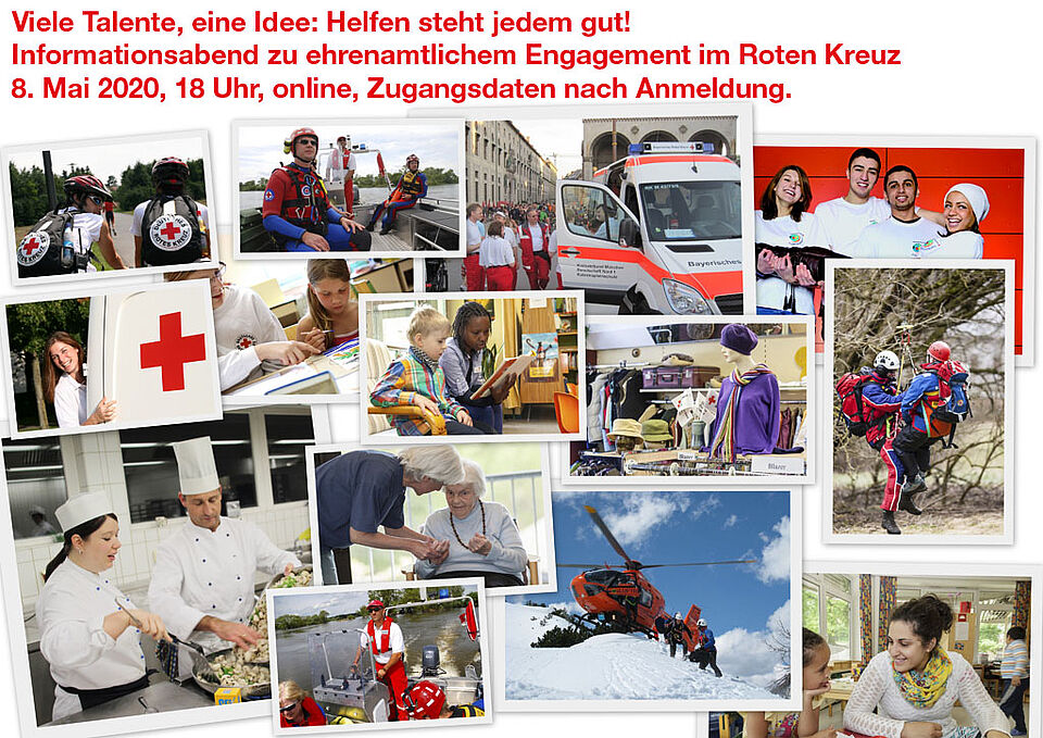 Ganz allgemein engagieren sich beim Roten Kreuz in Stadt und Landkreis München rund 3.800 ehrenamtliche Helfer*innen in den fünf Gemeinschaften Bereitschaften, Bergwacht, Jugendrotkreuz, Wasserwacht und Wohlfahrts- und Sozialarbeit. Ihre Aufgaben reichen dabei von sozialen Aufgaben für Migranten, Senioren, Jugendliche, Kranke oder Bedürftige über die Berg- und Wasserrettung sowie den Katastrophenschutz bis hin zur projektbezogenen Unterstützung.