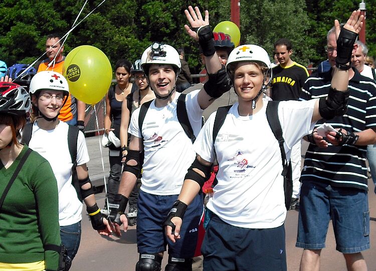 Daneben sind wir auch von Jahr zu Jahr unterschiedlich, je nach Möglichkeiten der Skater, auch bei anderen Touren von Skate Munich o.ä. vor Ort. Dabei sind sichern wir mit durchschnittlich sechs Saniskatern, Begleitfahrzeug und unseren Radlsanis als Unterstützung die Veranstaltungen ab.