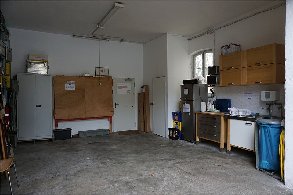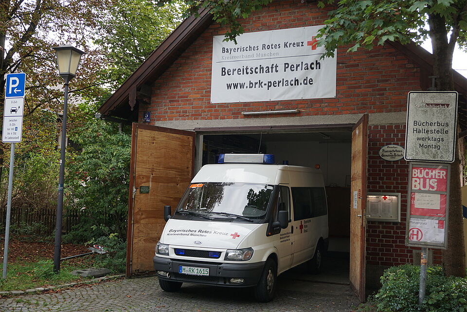 Bis zum Jahre 1980 war die Bereitschaft Perlach ohne feste Bleibe. Kolonnenabende fanden im Gasthof Hufnagl statt oder in den Räumlichkeiten der Pfarrei St. Michael. Schließlich erhielt die freiwillige Feuerwehr Perlach im Jahre 1980 einen Neubau in der Neubibergerstraße, sodass die Stadt München uns die bisherige, nun ungenutzte Fahrzeuggarage übergeben konnte. Fortan konnten und können wir bis heute unser Einsatzfahrzeug im Herzen Perlachs parken. Es sollte aber noch bis ins 21. Jahrhundert dauern, bis wir in vielen ehrenamtlichen Stunden die Garage zu einem "Heim" umbauen konnten. In Eigenregie richteten wir einen Schulungsraum, eine Küche und ein WC ein, sodass nun Bereitschaftsabenden, Ausbildungsveranstaltungen oder Sanitätswachdiensten unter einem eigenen Dach nichts mehr im Wege stand. Seitdem ist das altehrwürdige Heim zentraler Identifikationsort, Symbol, Treffpunkt und sogar ein Stück Heimat geworden. Mittlerweile wurden auch umfangreiche Sanierungsmaßnahmen der Elektroinstallation durch die Stadt München durchgeführt und der Stromanschluss ertüchtigt, sodass wir nun auch eine angemessene Winterfestigkeit erreicht haben.